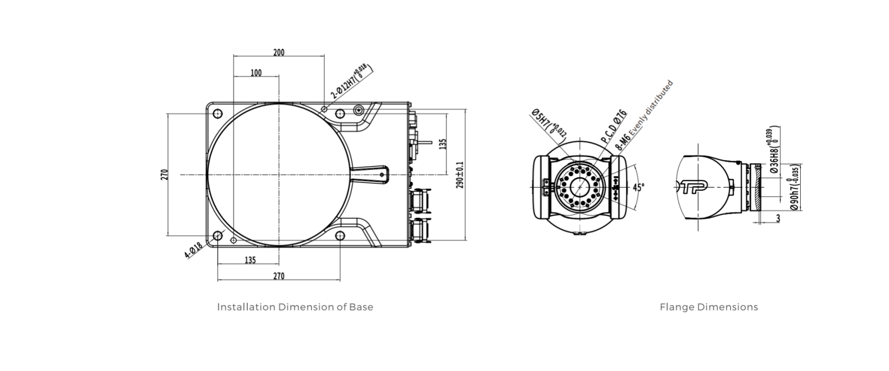 Adopt high speed motor, the robot has high rigidity and faster beat: Adopt leak-proof structure, the protection class of robot is up to lP 67 to adapt harsher working environment. The robot in the axes of J2 J3 J4 is reserved installation holes to install fixed solenoid valve and other accessories. There are IO port and dual-circuit gas pipe at J3 axis to meet the handling application.