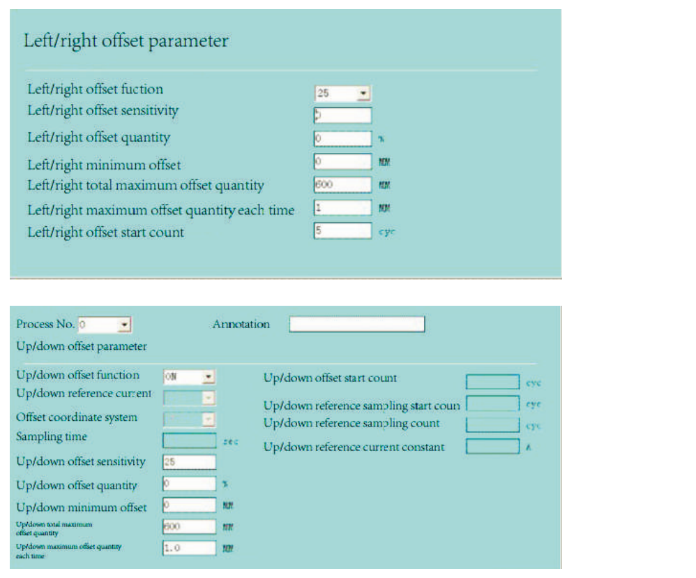 • The system judges the difference between the current weld and the preset current according to the current amplitude, and confirms its up, down, left, and right deviation values;