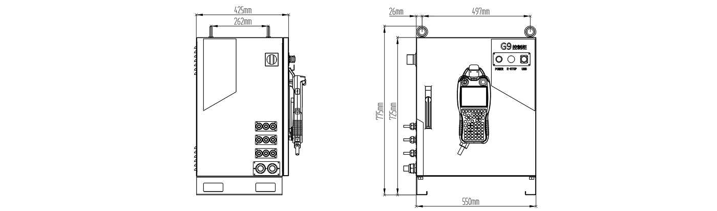 电柜主要分为电源室和控制室。电源室主要集中发热器件,采用多组风扇+风道设计,保障发热器件良好散热。控制室与电源室隔离,避免粉尘、油污进入控制室,保障控制室清洁,避免控制室内器件受到粉尘、油污影响导致工作异常。