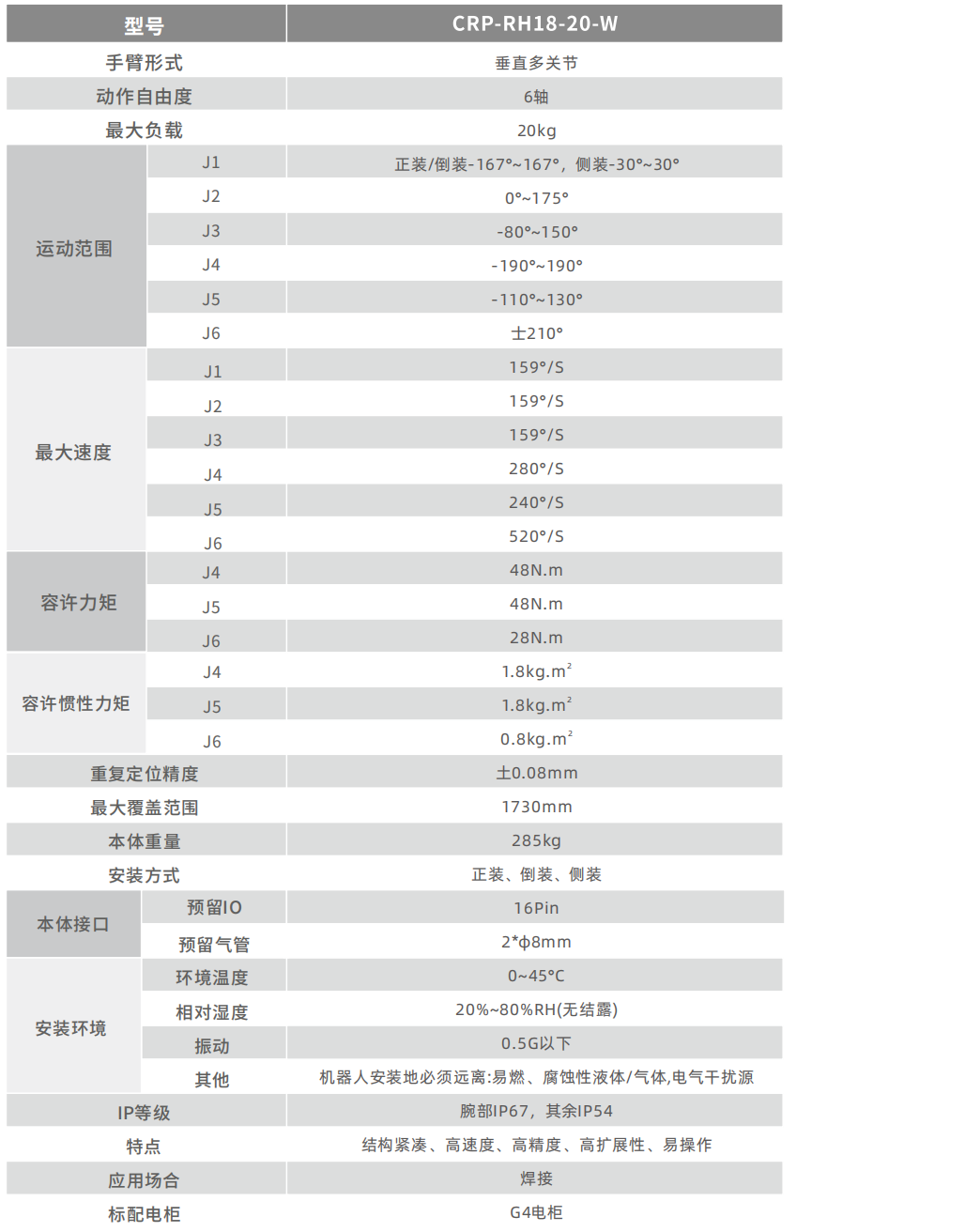 工作空间大、运行速度快、重复定位精度高,适用于焊接应用,适用范围广。