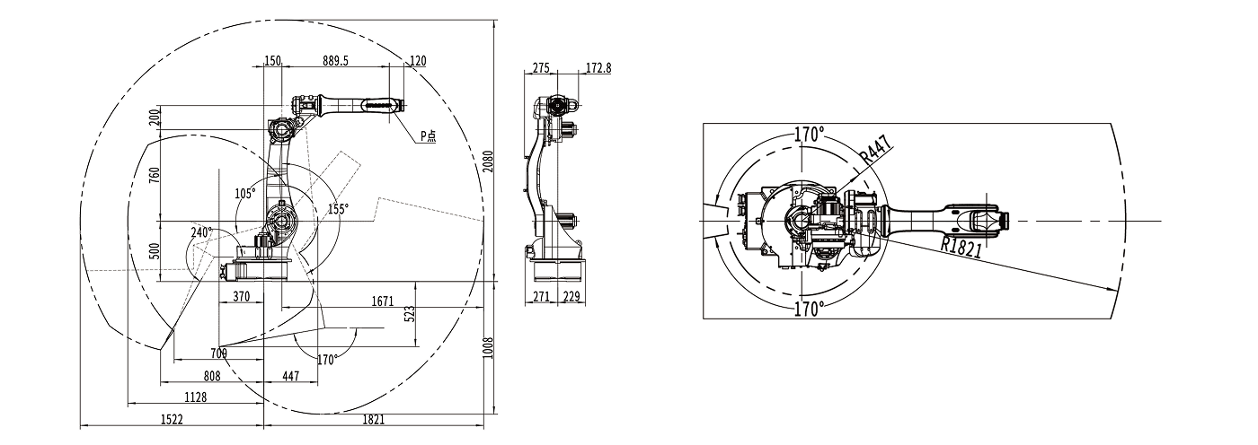 • 机器人整体结构高度紧凑、轻量化,更加轻巧适用,尤其腕部更加小巧,满足更多的场景。