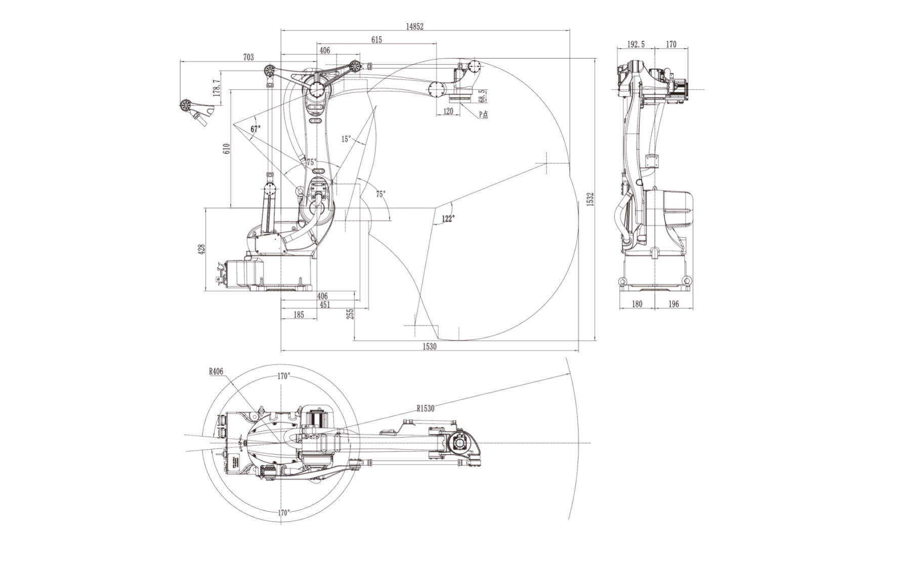 • 重力补偿功能,在任意位姿都能保证机器人精度。